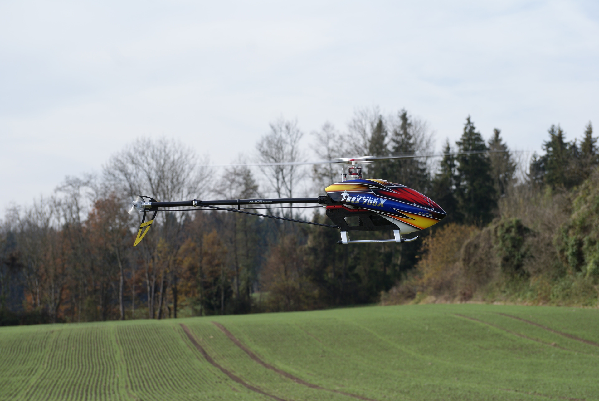 Anfangs gab es nur die T-Rex 700X, daher wurden die Helis von Christian Rose entsprechend gestretched um Rotorblätter mit bis zu 720mm Länge fliegen zu können: Die Komponenten hierzu sind Serienteile von Align und stammen vom T-Rex 700 DFC Nitro, dessen Heckrohr 800mm lang ist, anstelle des serienmäßigen Heckrohrs vom 700X mit einer Länge von 785mm.